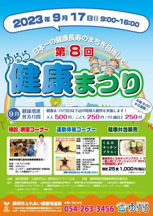 健康普及月間となる2023年9月17日(日)ゆらら健康まつりを開催いたします。