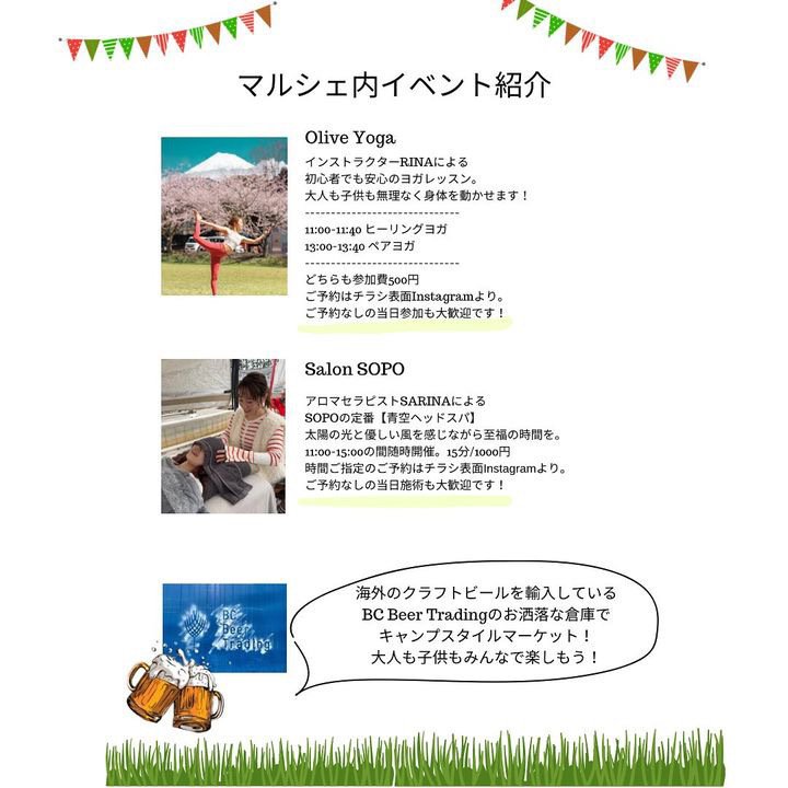 ヨガレッスンに青空ヘッドスパ、マルシェブースには美味しいビールやフードが