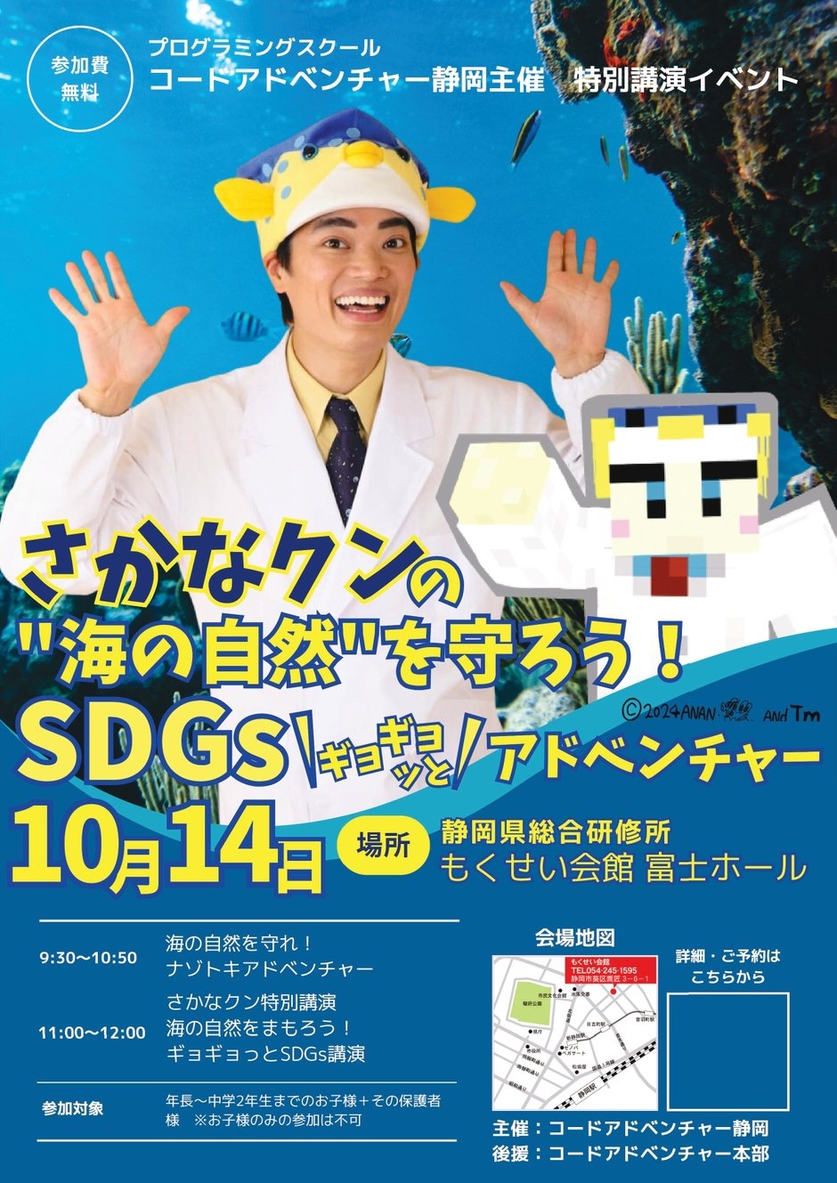 10月14日に【さかなクンの”海の自然”を守ろう!SDGs ギョギョッとアドベンチャー】が静岡県総合研修所もくせい会館富士ホールで開催されます。