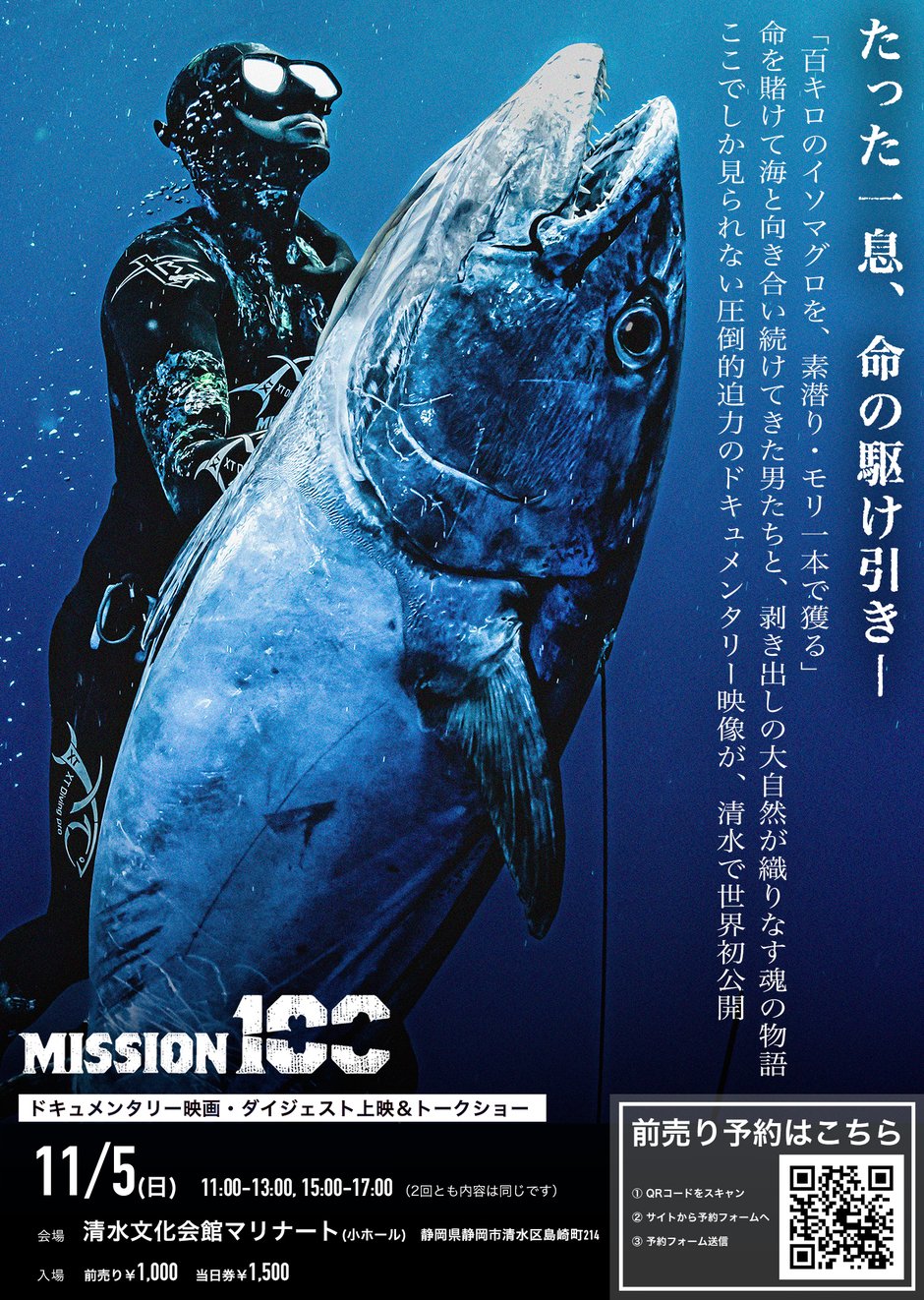 【 Mission100ダイジェスト上映&トークショー 】「100キロのイソマグロを素潜りで獲る」命を賭けて海と向き合う男たちのドキュメンタリー映像が、まぐろのまち清水で世界初公開!