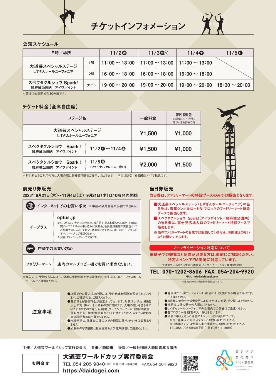 | お問い合わせ | 大道芸ワールドカップ実行委員会 TEL:054-205-9840 MAIL:info@daidogei.com |