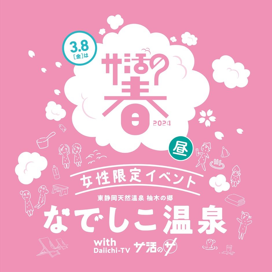 | お問い合わせ | 【主催】Daiichi-TV/東静岡天然温泉 柚木の郷 【協力】℃64プロジェクト 【お問い合わせ】 Daiichi-TV事業プロデュース部 054-283-8115(平日10:00~17:00) |