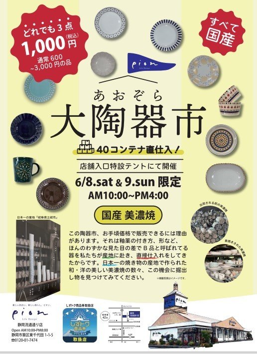 <内容> 通常600~3,000円の陶器、お好きなものどれでも3点税込1,000円で販売いたします。