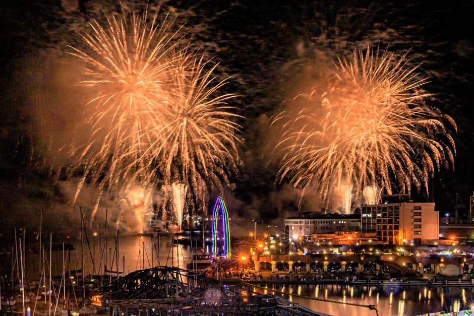 最終日6日に行われる海上花火大会は60分間に1万発の花火が港と夜空を彩ります。