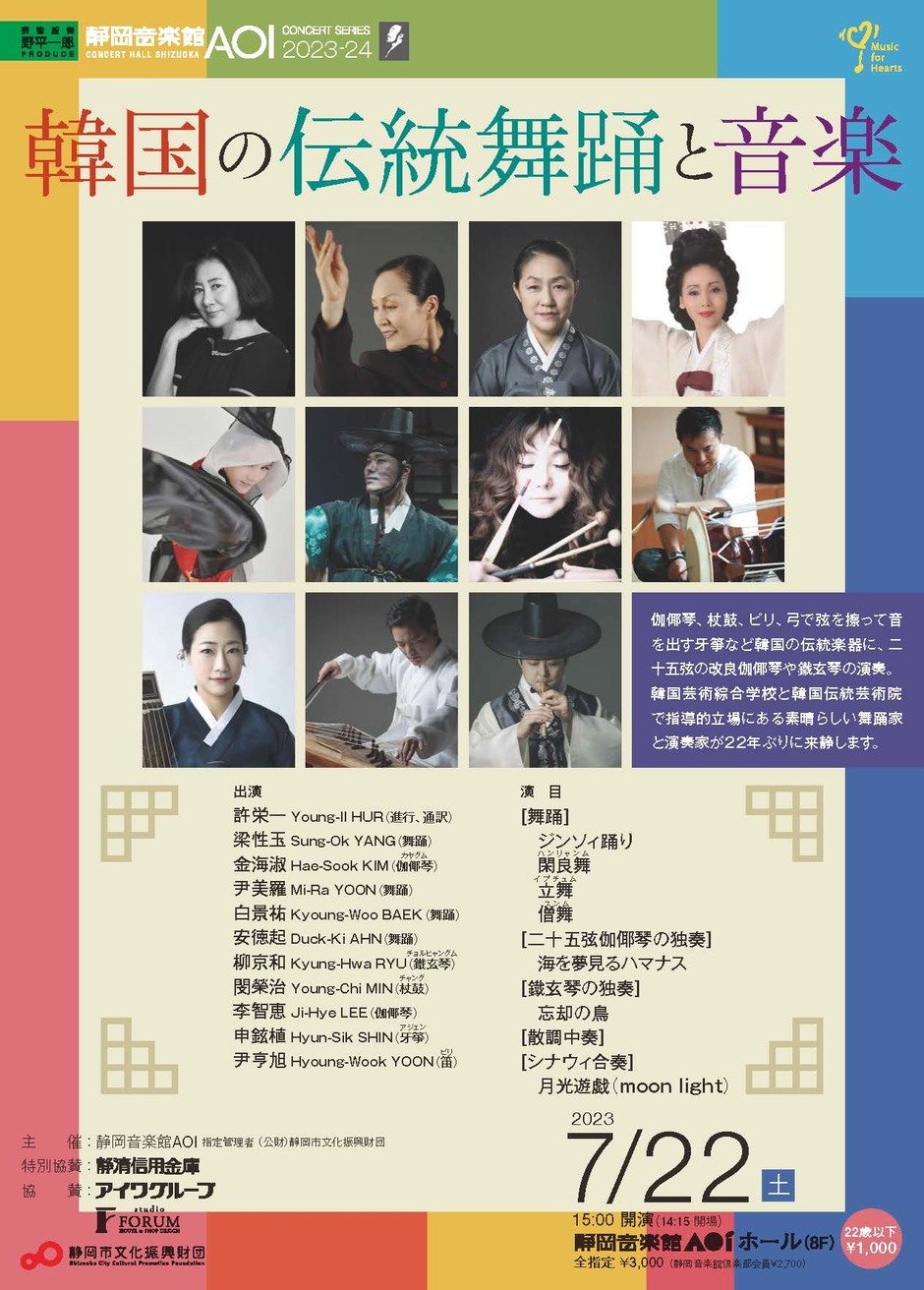 韓国国立綜合芸術学校伝統芸術院で指導的立場にある素晴らしい舞踊家と演奏家が22年ぶりに来静します。