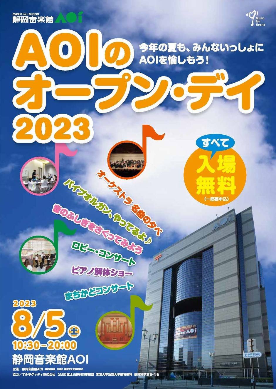 静岡音楽館AOIでは今年も、市民が音楽とふれあえるイベント「AOIのオープン・デイ」を開催します。