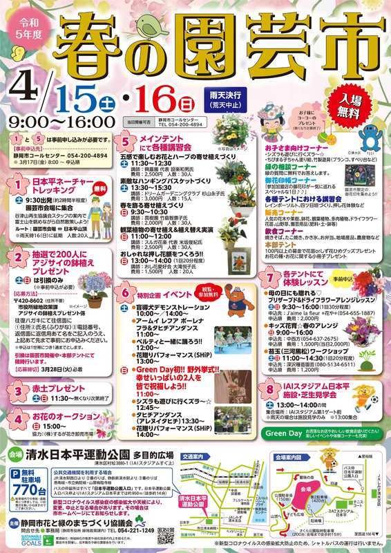 | お問い合わせ | 静岡市花と緑のまちづくり協議会事務局(静岡市役所緑地政策課内) 054-221-1249 |