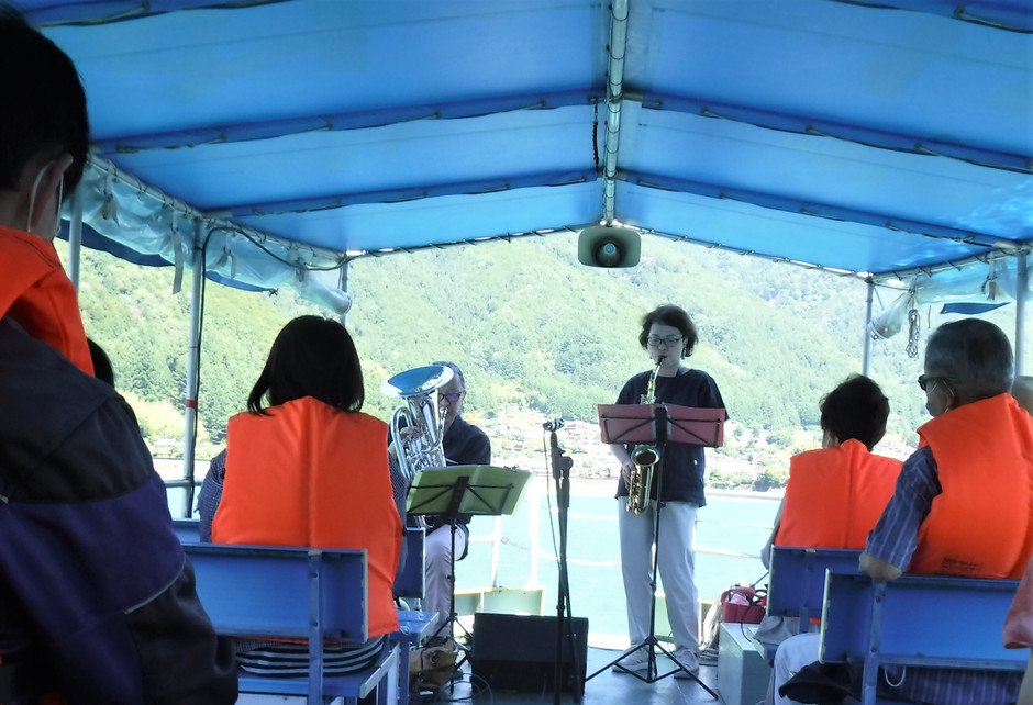 船の上でサックス、フルート、などの井川にゆかりのある演奏者を中心に、360°大自然に囲まれながら演奏をお楽しみいただけます。