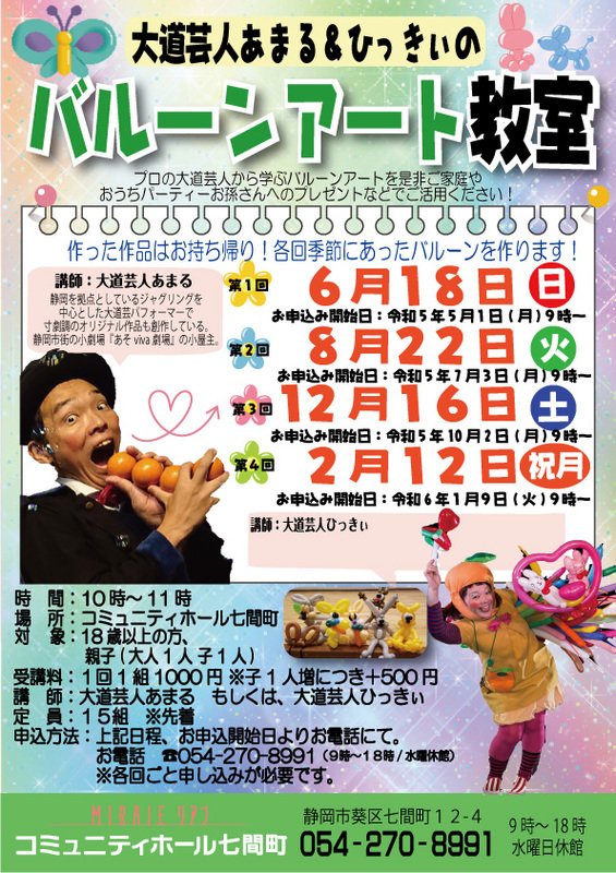 大人気大道芸人あまる&ひっきぃが講師のバルーンアート教室です。