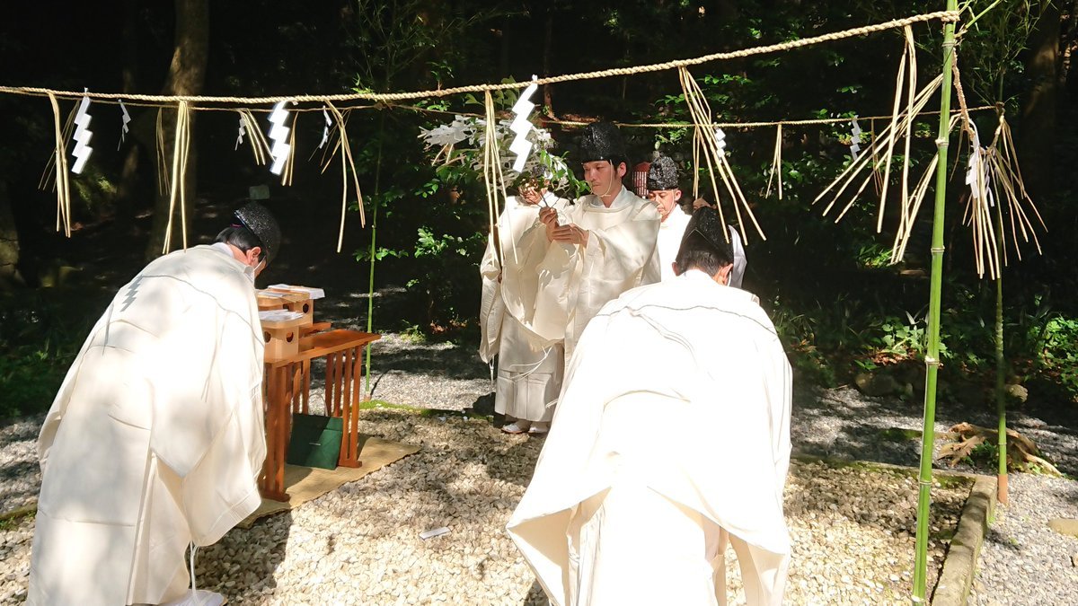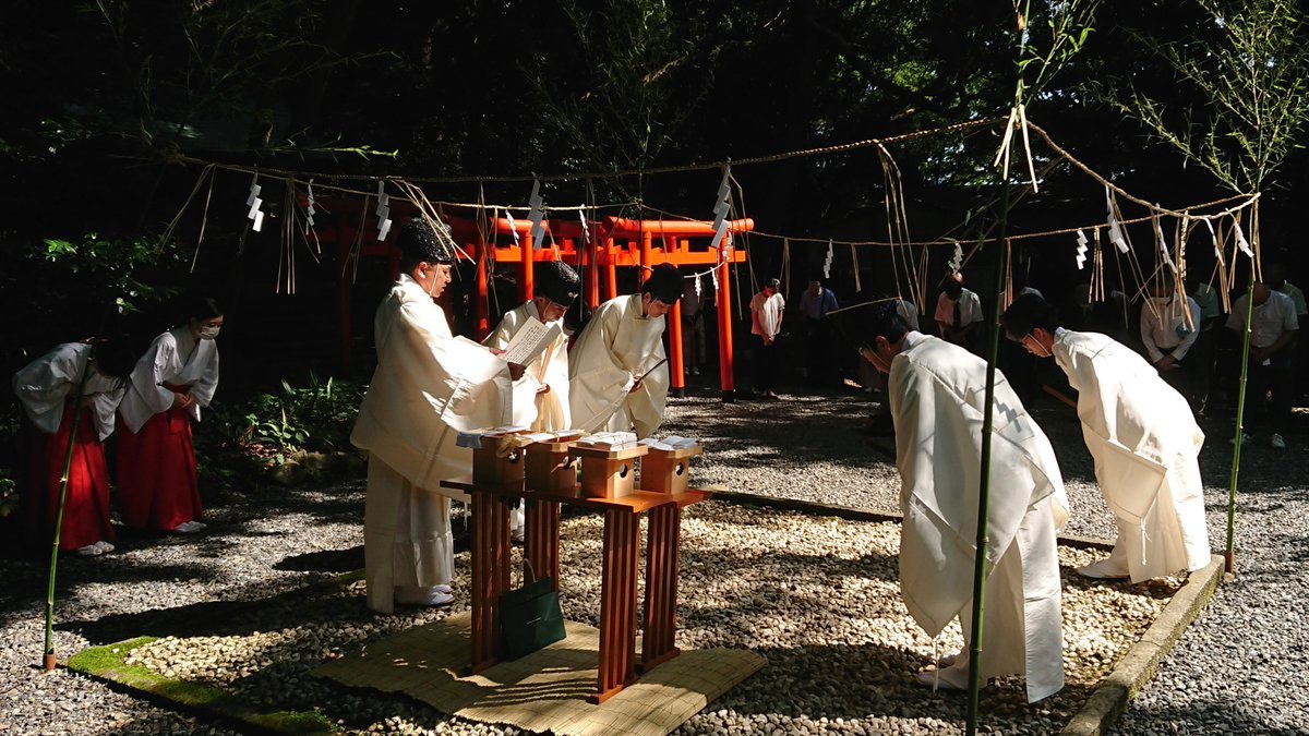 本日15時より大祓式が斎行されました。6月の大祓は「夏越の祓(なごしのはらえ)」とも言われ、古くから12月の大祓と共に全国の神社でも行われています。 大祓詞を唱え、この半年間に知らず知らずの内に体に受けた罪や穢れを人の形をした形代に遷して祓い清めます。疫病退散の願いも込められた神事です。