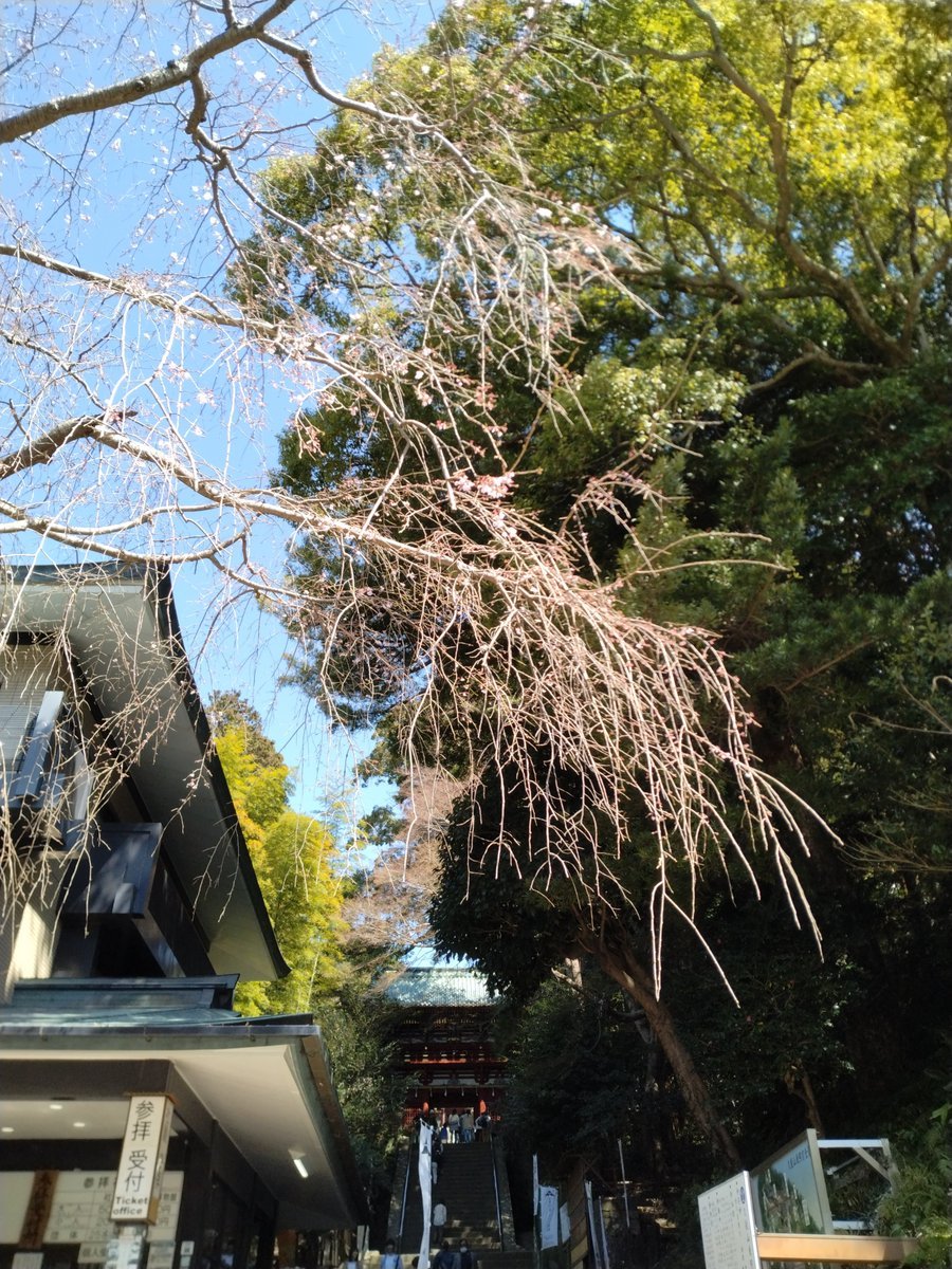 境内の枝垂れ(しだれ)桜の開花が始まりました。 #久能山東照宮開花情報
