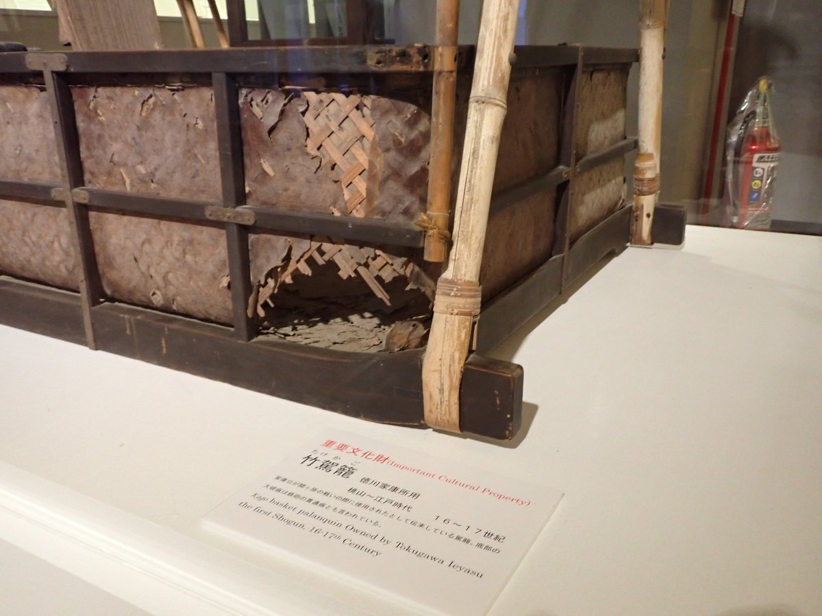 本日(4月17日)より久能山東照宮博物館にて、徳川家康公所用の竹駕籠を特別公開致します。こちらは戦場で使用されたと伝わっており、底部には銃弾の通過した痕とされる穴がそのまま残されています。家康公と共に戦場を駆け抜けた竹駕籠、ぜひご覧ください(博)